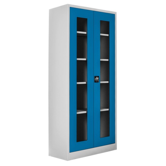 Metal Ofis Camlı 198 lik Dosya Dolabı Gri-Mavi